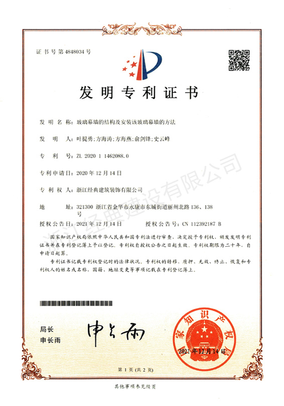 一種建筑玻璃幕墻及其施工方法...