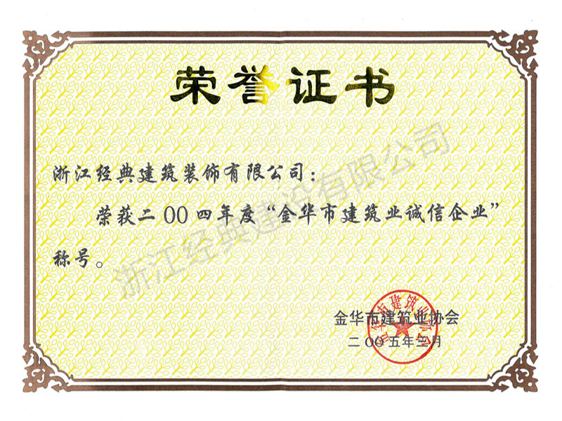 2004年度金華市建筑業(yè)誠信企...