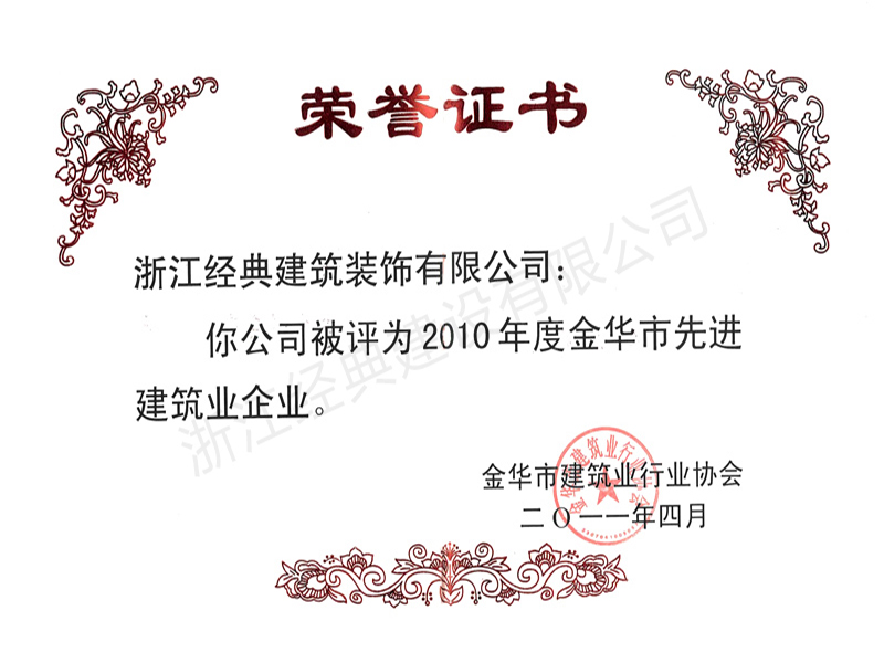 2010年度金華市先進(jìn)建筑業(yè)企...