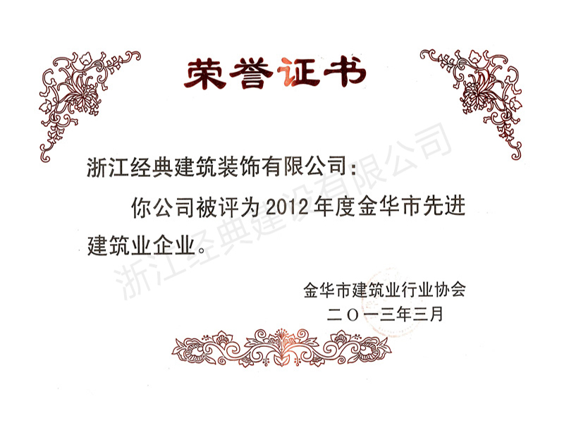 2012年度金華市先進(jìn)建筑業(yè)企...