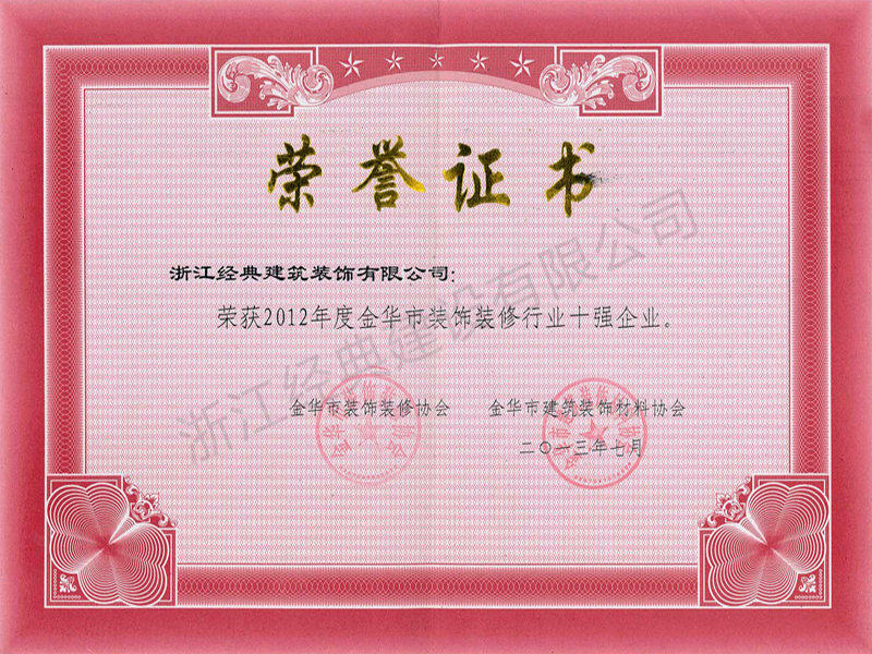 2012年度金華市裝飾裝修行業(yè)...