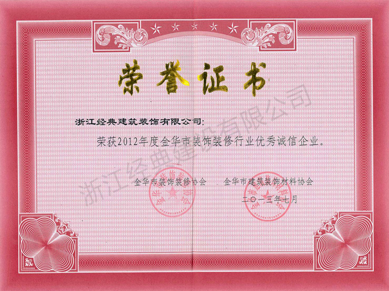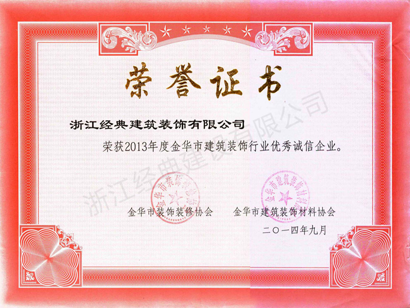 金華市裝飾裝修行業(yè)優(yōu)秀誠信企業(yè)...